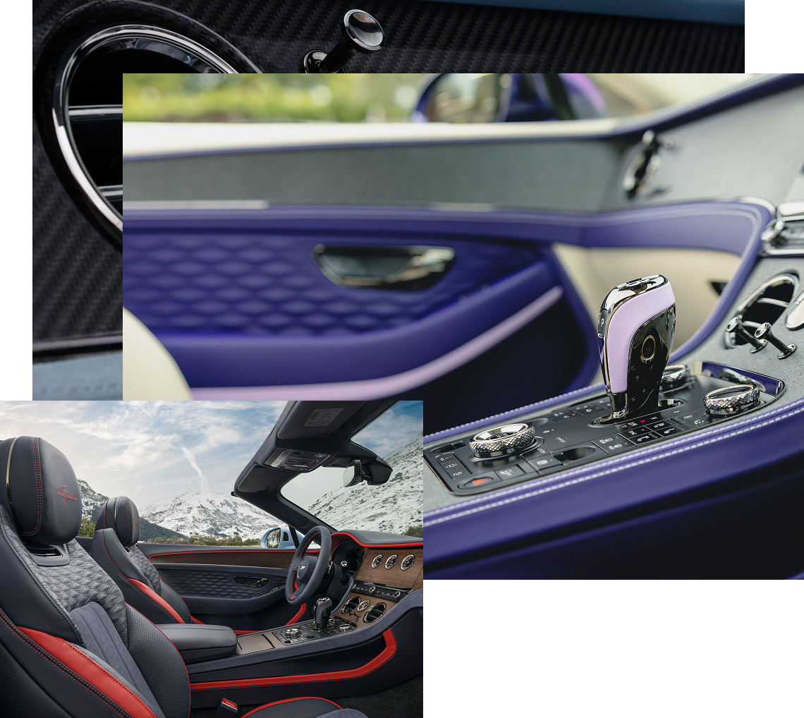 Personalising your car starts with the exterior, where you can choose from seven standard colours. With the extended range and Mulliner Paints, that total grows to more than 80, including new finishes Gravity Grey and Tourmaline Green. Your chosen paintwork can be paired with any one of seven hood finishes, including matt fabrics and a contemporary tweed option.